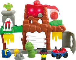 Objevte interaktivní dinosauří svět s vulkánem, tunely a pohyblivými prvky, které vybízejí k tvořivé hře. Děti mohou spouštět kameny, projíždět vozidlem, otevírat brány a vymýšlet si vlastní napínavé příběhy s roztomilými figurkami.