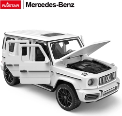 Detailně zpracovaný kovový model v měřítku 1:32 představuje ikonický MERCEDES‑BENZ AMG G63 od značky Rastar. Nabízí kovovou karoserii, gumová kola, funkční světla a zvuky a otevírací kapotu i boční dveře. Součástí je napájení LR44 a certifikace CE/EN71/RoHS.