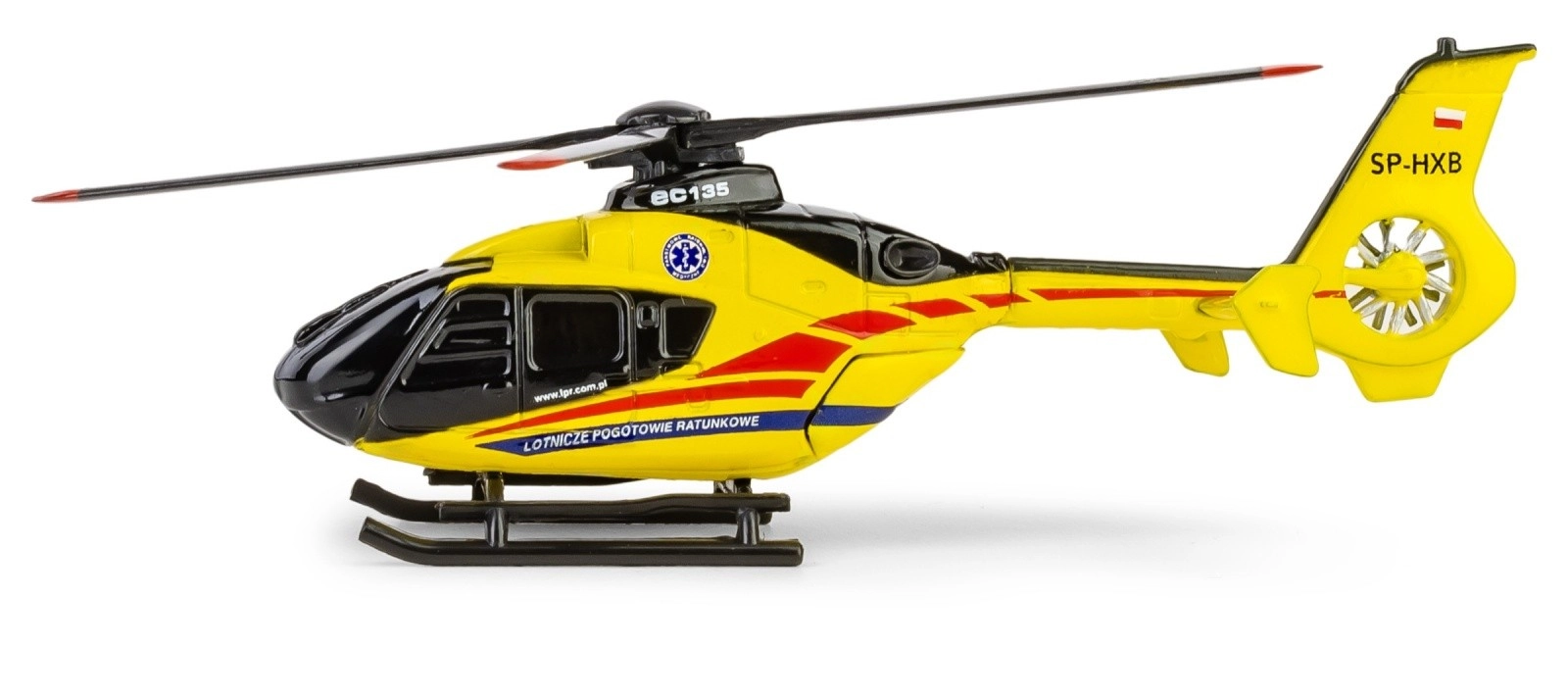 Tento licencovaný model věrně zobrazuje vrtulník AIRBUS EC135 používaný leteckou záchrannou službou. Precizní potisk a autentické označení odpovídají reálnému zbarvení, díky čemuž model skvěle vynikne ve sbírce i na pracovním stole.