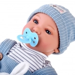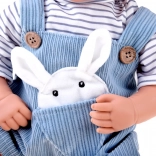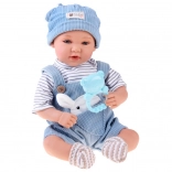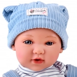 Interaktivní panenka typu miminko zaujme realistickými rysy tváře, dlouhými řasami a výraznýma očima. Má měkké tělíčko pro snadné mazlení a plastovou hlavičku i končetiny pro odolnost při každodenní hře. Stylový outfit v modrém, nebo šedém manšestru se skvěle doplňuje s pruhovaným tričkem a pletenou čepičkou.