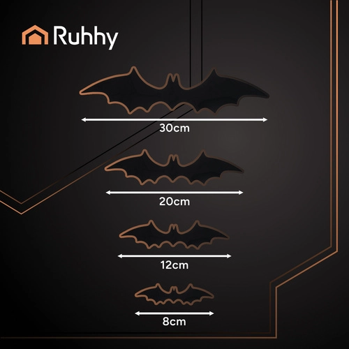 Stylová dekorace pro Halloween, tematické párty i fotokoutky. Sada obsahuje netopýry ve 4 velikostech, které snadno zkombinujete do roje nebo efektu „vzletu“. Díky nízké hmotnosti a přiložené pásce je montáž rychlá a šetrná k povrchům.