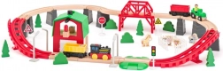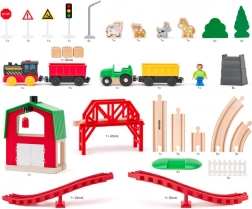 Dřevěná vláčkodráha Život na farmě přináší dětem autentický svět farmy s vláčkem, kolejnicemi a tematickými doplňky. Děti si mohou vytvářet vlastní příběhy, rozvíjet koordinaci ruka–oko a učit se základním principům cause–effect při posouvání vláčku po kolejích.