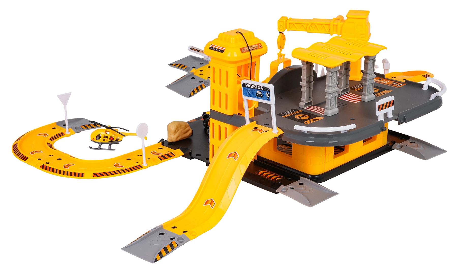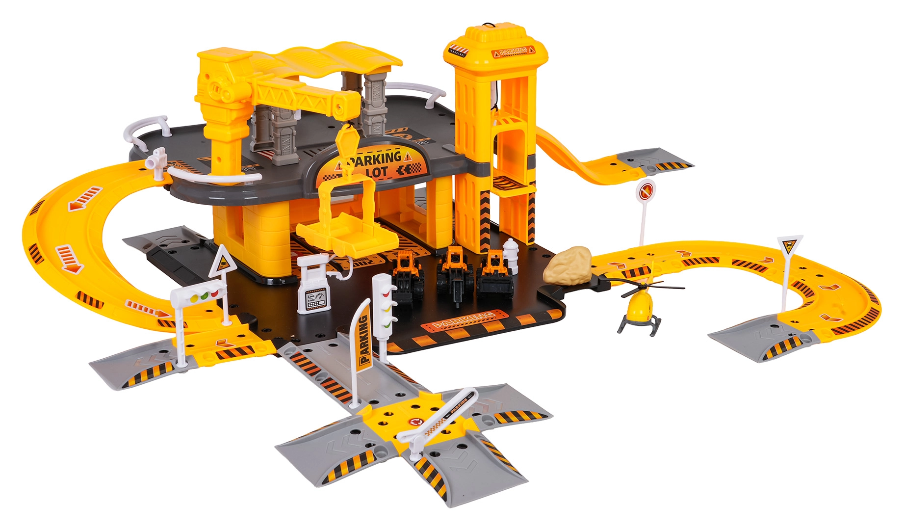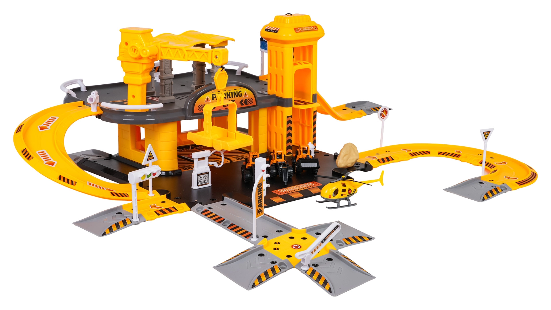 Toto detailně zpracované stavební parkoviště potěší všechny malé fanoušky stavebních strojů. Spodní patro nabízí čerpací stanici a silnice, výtah ručně vyveze vozidla do prvního patra, kde se nachází stavební zóna s funkčním jeřábem. Sestava je kompaktní, ale přináší spoustu herních možností a plynulé jízdy po točitých rampách.
