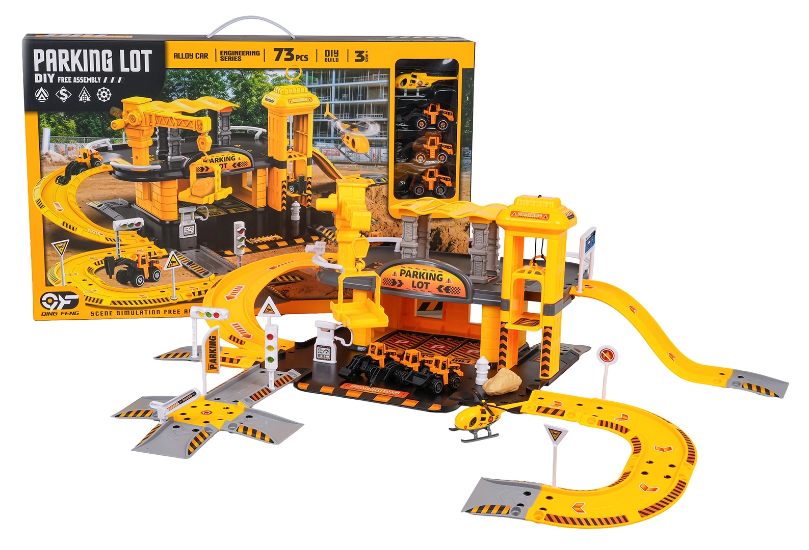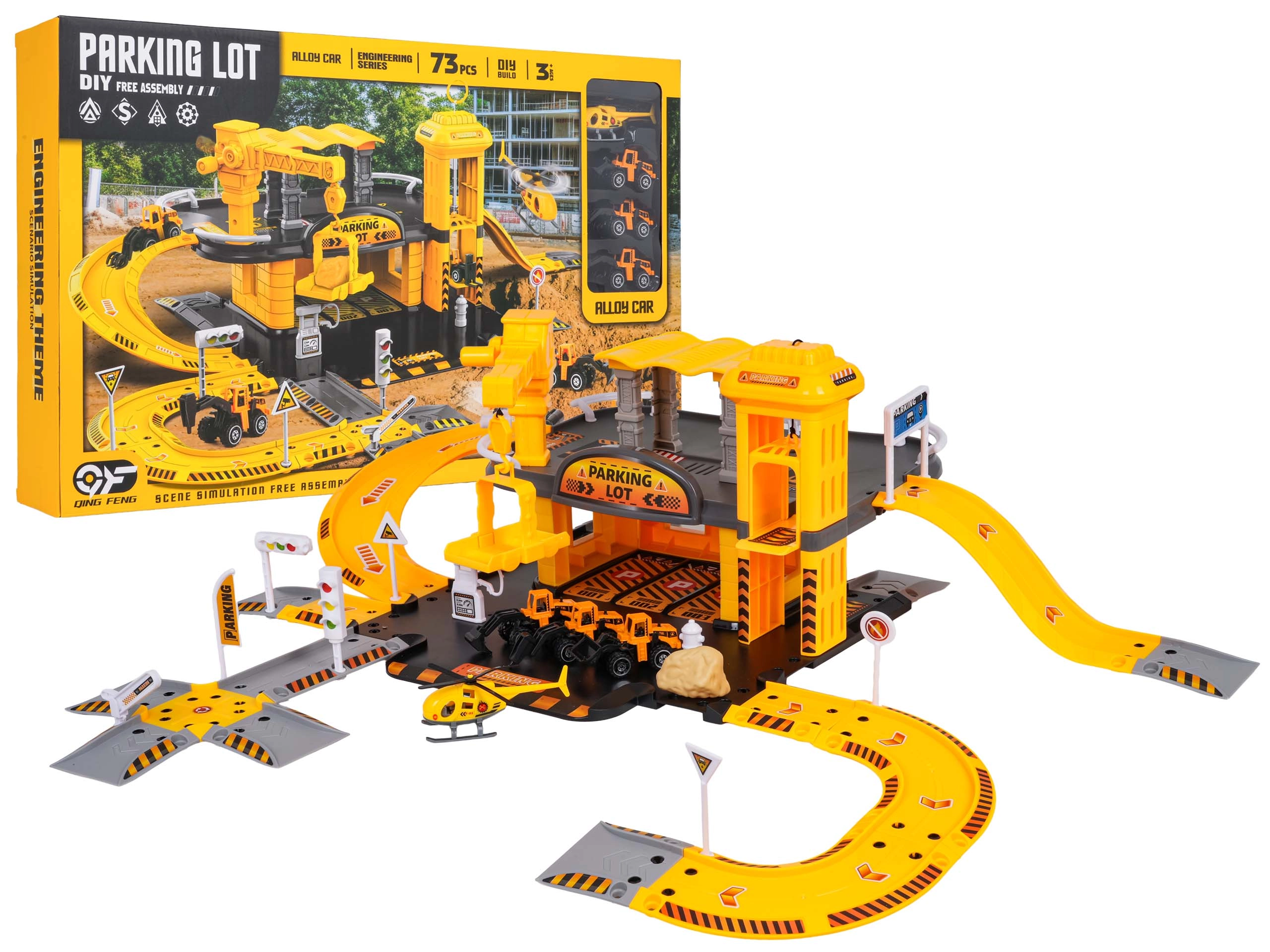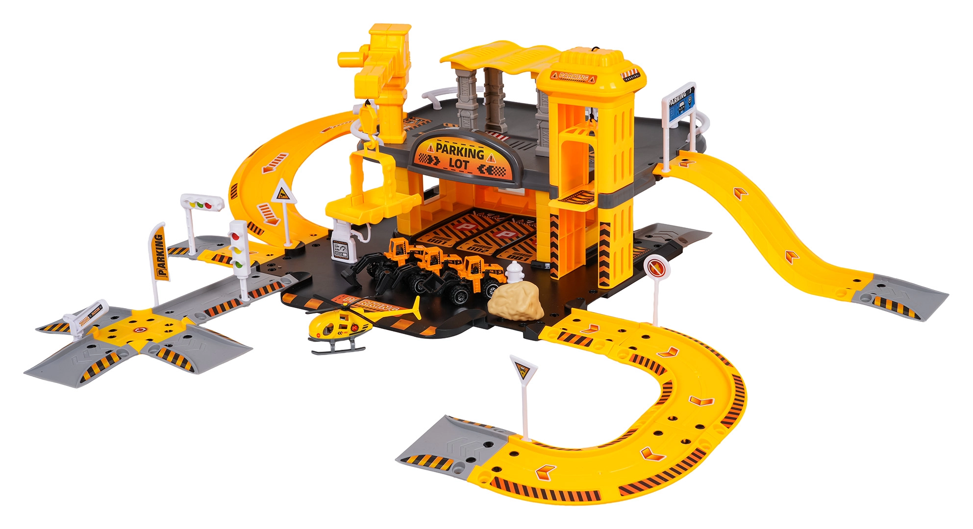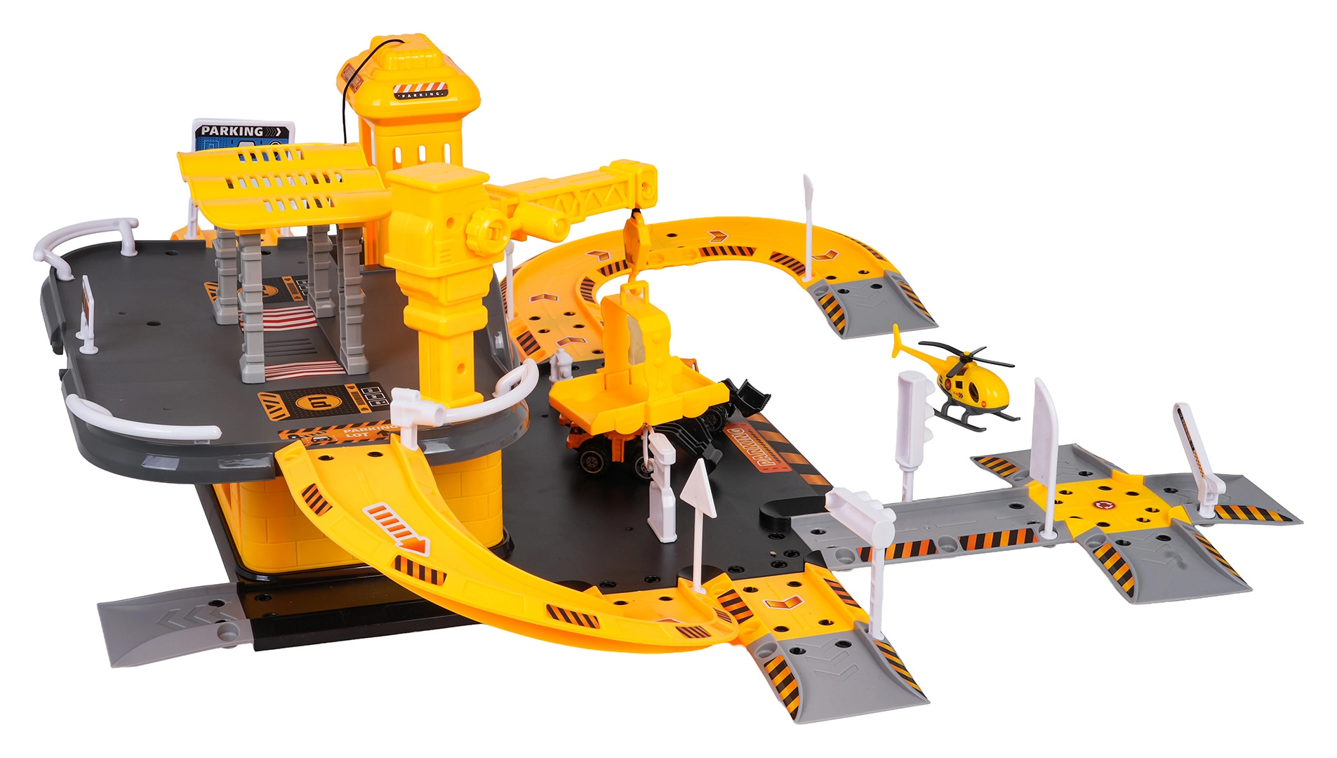 Toto detailně zpracované stavební parkoviště potěší všechny malé fanoušky stavebních strojů. Spodní patro nabízí čerpací stanici a silnice, výtah ručně vyveze vozidla do prvního patra, kde se nachází stavební zóna s funkčním jeřábem. Sestava je kompaktní, ale přináší spoustu herních možností a plynulé jízdy po točitých rampách.