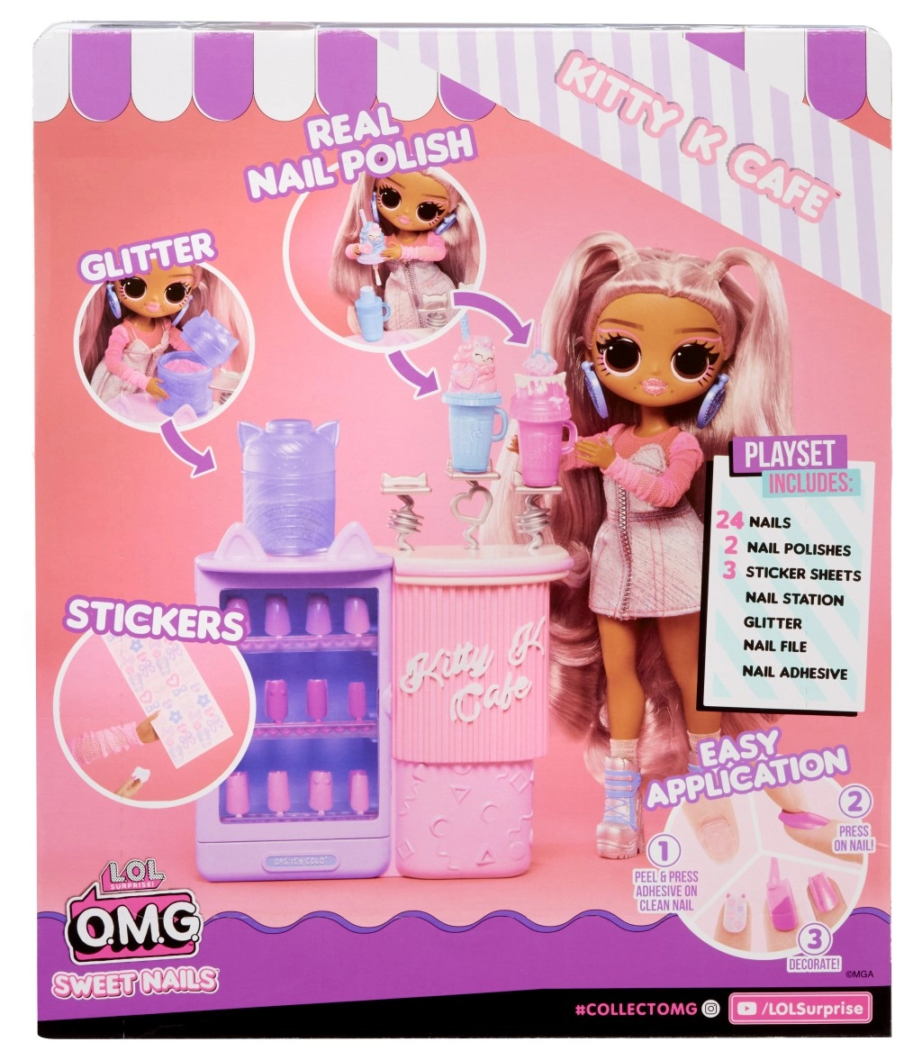 S kreativní sadou L.O.L. Surprise! OMG Sweet Nails děti promění své nápady v originální nehtové designy. Součástí je stylová módní panenka s pohyblivými klouby a odnímatelným oblečením, kterou lze kombinovat s různými doplňky. Díky bohaté výbavě je zdobení nehtů snadné a zábavné.