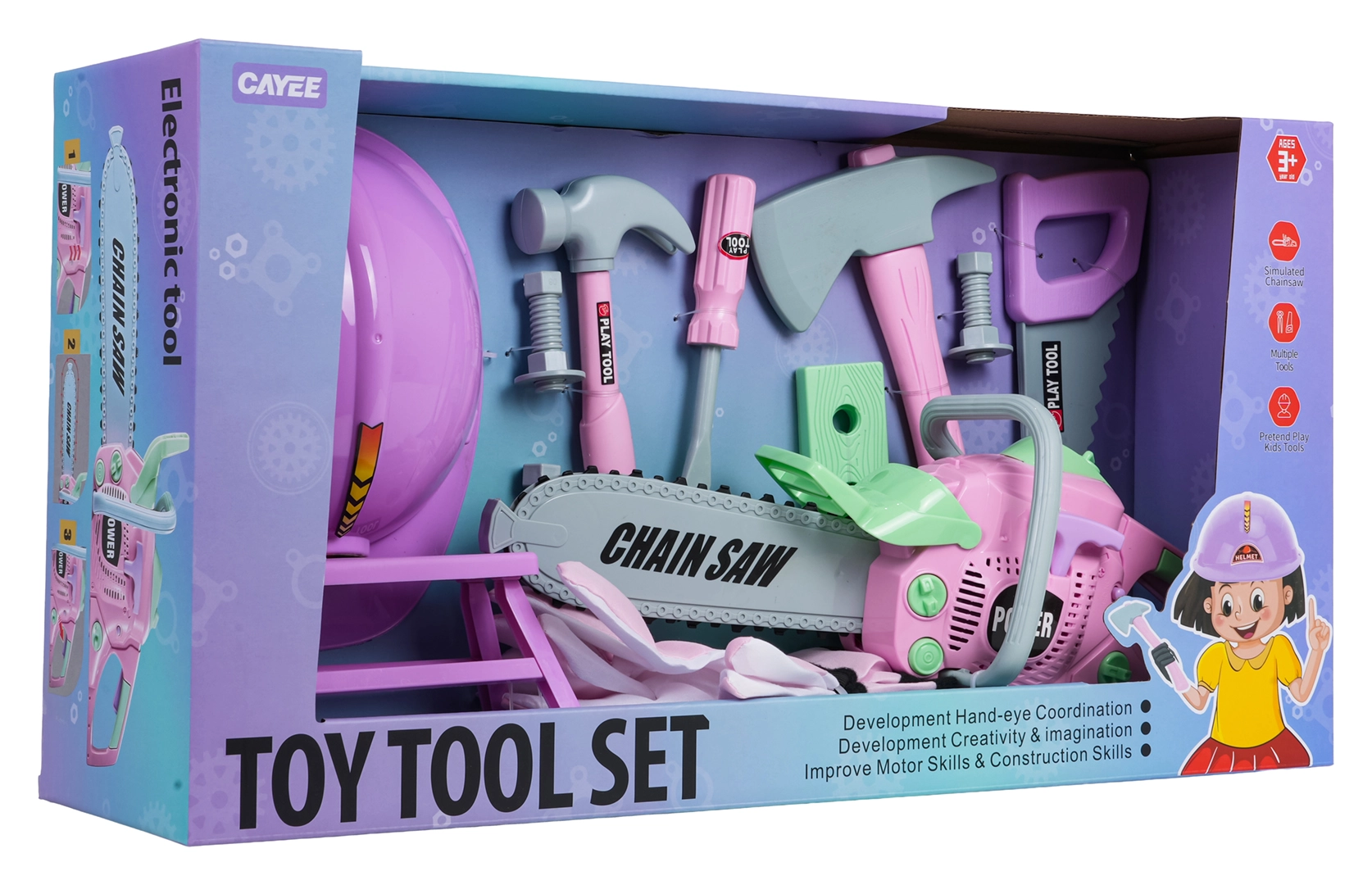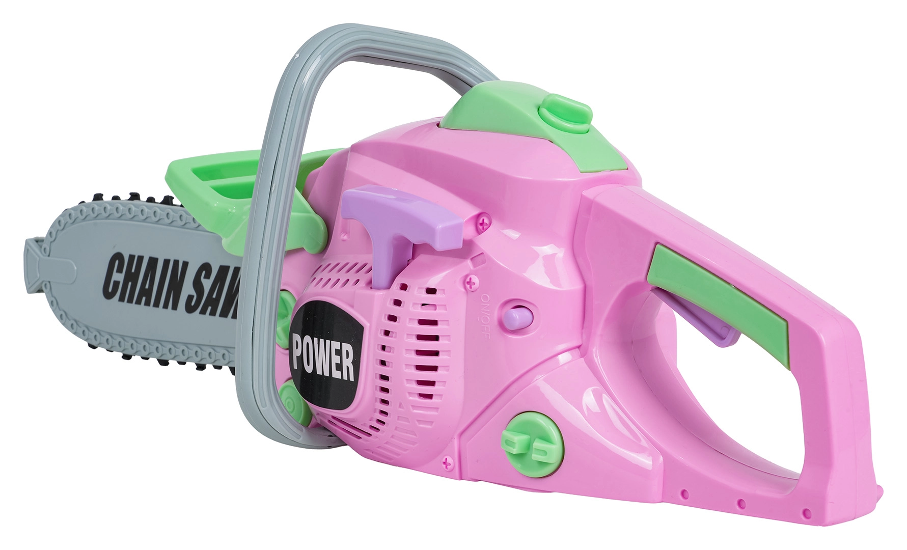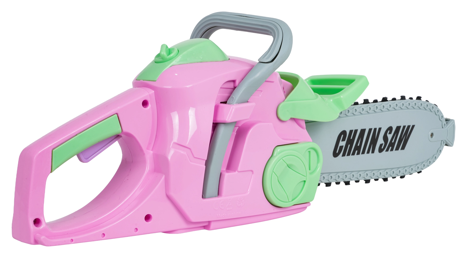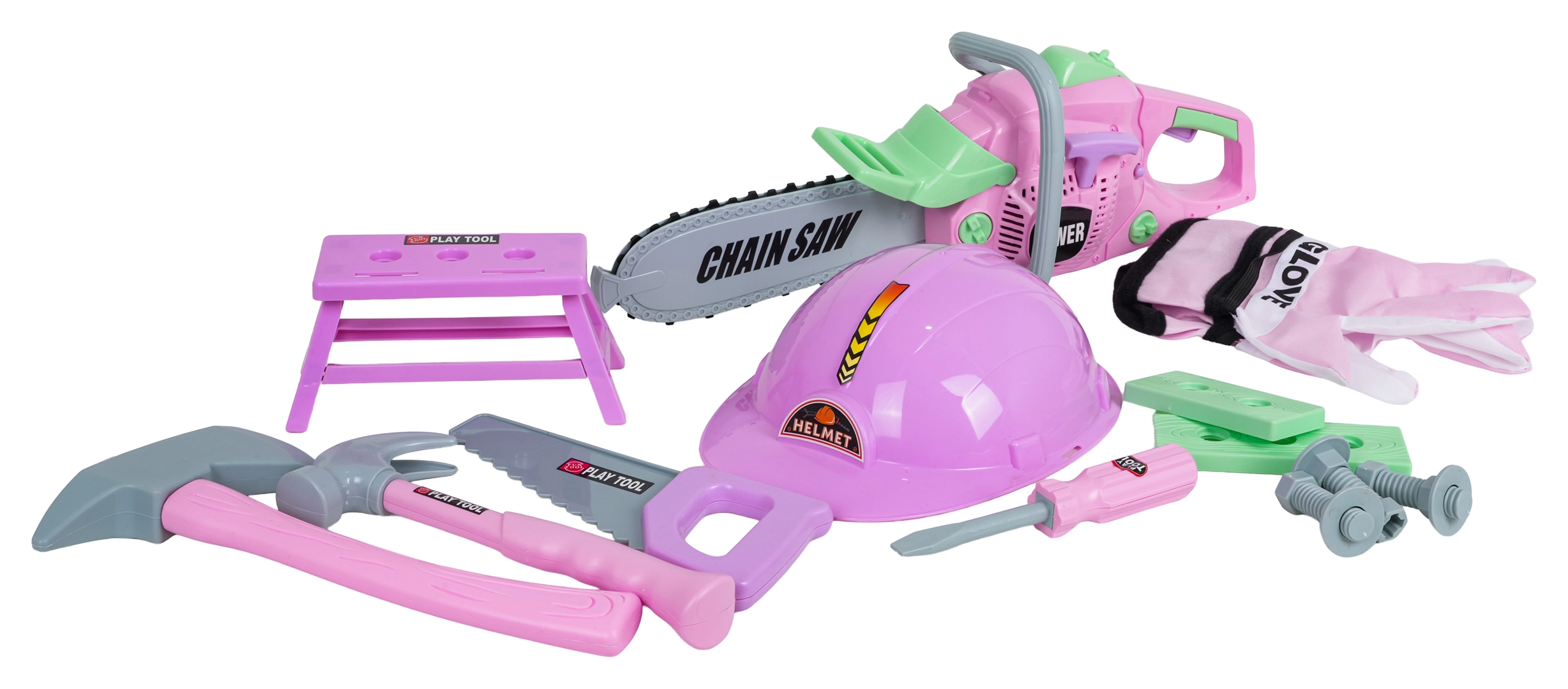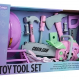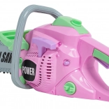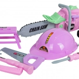 Růžová sada nářadí pro děti s motorovou pilou a příslušenstvím