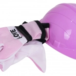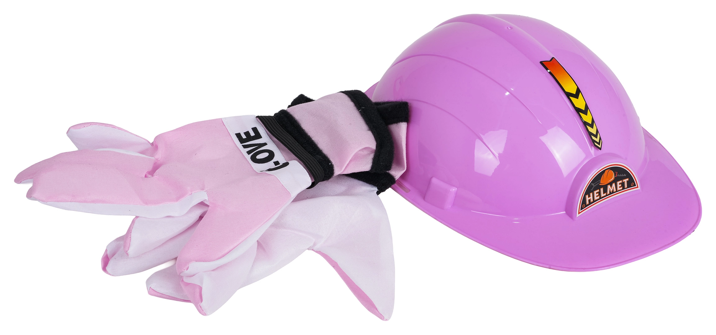 Součástí sady je růžová helma a měkké rukavice pro bezpečnější a realističtější hraní malých opravářů.