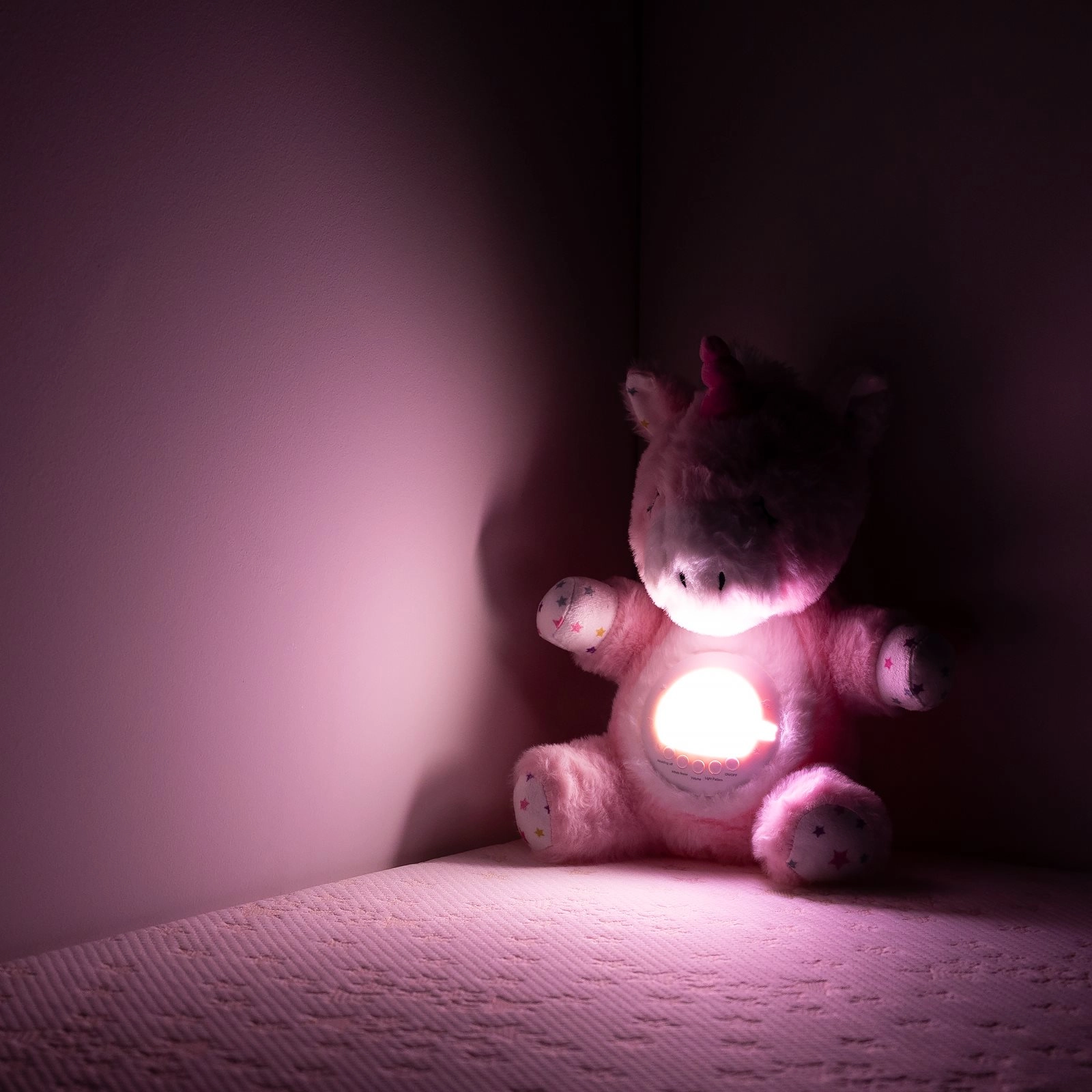 Udělejte z večerního usínání magický rituál. Tento měkoučký plyšový jednorožec od značky CHIPOLINO spojuje noční světýlko, projekci hvězd a ukolébavky s bílým šumem pro klidný spánek. Nabízí 3 režimy projekce, 9 světelných efektů, 5 úrovní hlasitosti a dokonce i houpací funkci pro jemné uklidnění miminka.