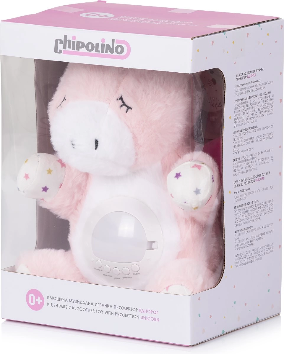 Plyšový jednorožec CHIPOLINO je hebký společník do postýlky, který zklidní vaše děťátko jemným světlem a přirozenými zvuky. Díky kombinaci projekce hvězdné oblohy, noční lampičky a ukolébavek vytváří příjemnou atmosféru pro nerušený spánek.