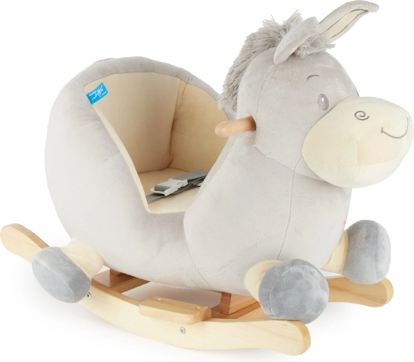 Houpací oslík Fips je ideální první houpačka do dětského pokoje. Nízká výška sedáku (cca 14 cm) usnadňuje malým dětem bezpečné nasedání i sesedání, zatímco měkké, pohodlně polstrované sedátko s bezpečnostním pásem udržuje dítě v bezpečí. Stabilní základna z masivního dřeva je navržena s ochranou proti převrácení.
