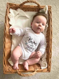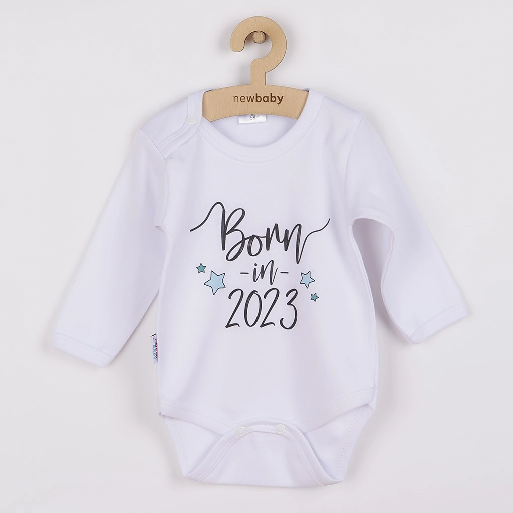 Originální kojenecké body NEW BABY v dárkovém balení zaujme kvalitním potiskem Born in 2023 a hebkým materiálem, ve kterém se miminko bude cítit pohodlně po celý den. Díky pečlivému zpracování a použití certifikovaných barev je body šetrné k citlivé dětské pokožce.