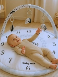 Měkoučká hrací deka s hrazdičkou BABY MIX přináší dětem od 3 měsíců bezpečné místo na hraní i focení růstu po měsících. Nabízí odnímatelnou hrazdičku, závěsné hračky (hrkálka, pískátko) a příjemný polstrovaný povrch pro hraní na bříšku i na zádech. Kulatý potisk s měsíci 1–12 usnadní zachycení nejkrásnějších okamžiků.