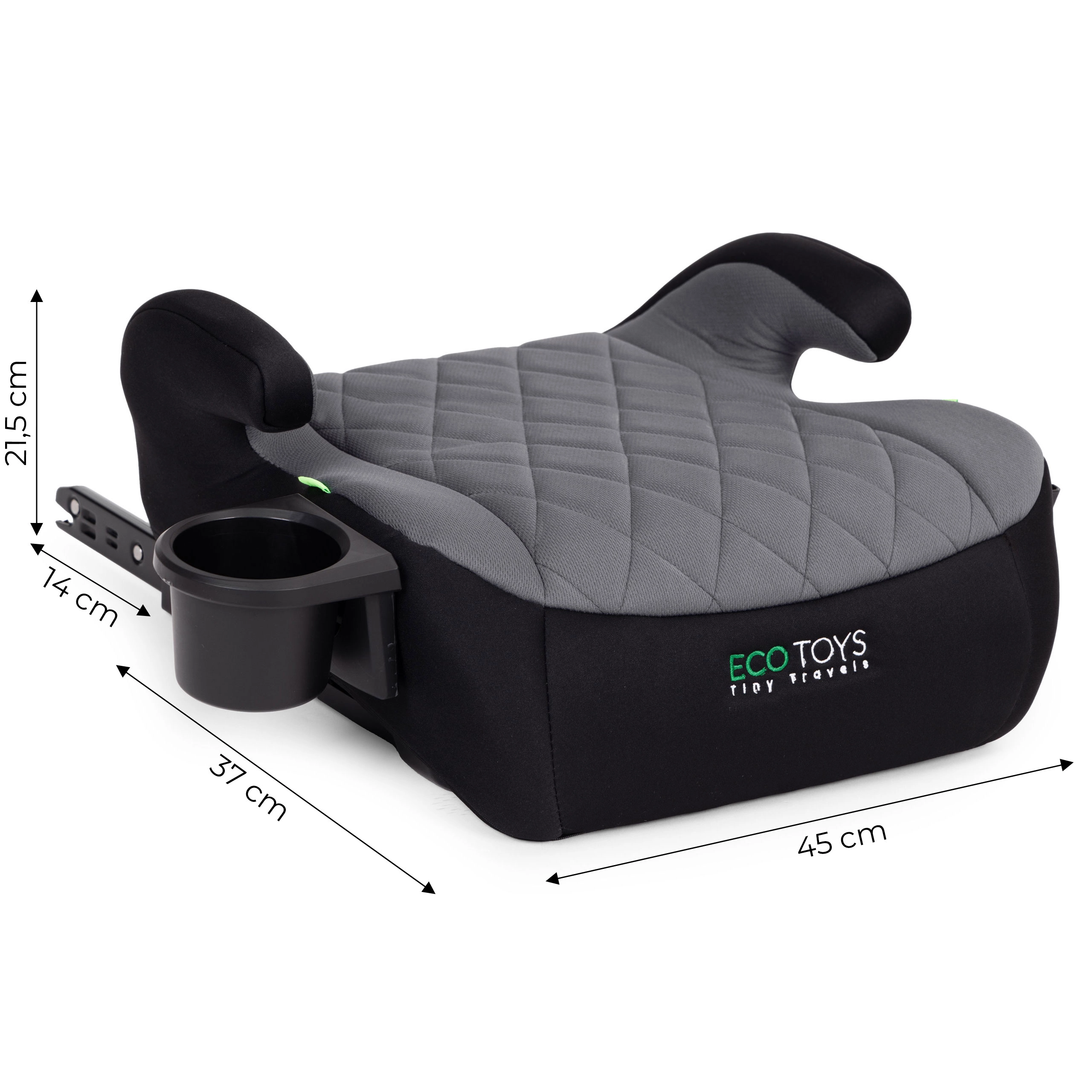 Bezpečný a pohodlný podsedák ECOTOYS pro děti vysoké 125–150 cm s upevněním ISOFIX, certifikací i-Size (ECE R129/03) a praktickým držákem na nápoj. Nabízí správné vedení bezpečnostního pásu, měkké polstrování a snadno snímatelný pratelný potah pro každodenní hygienu.