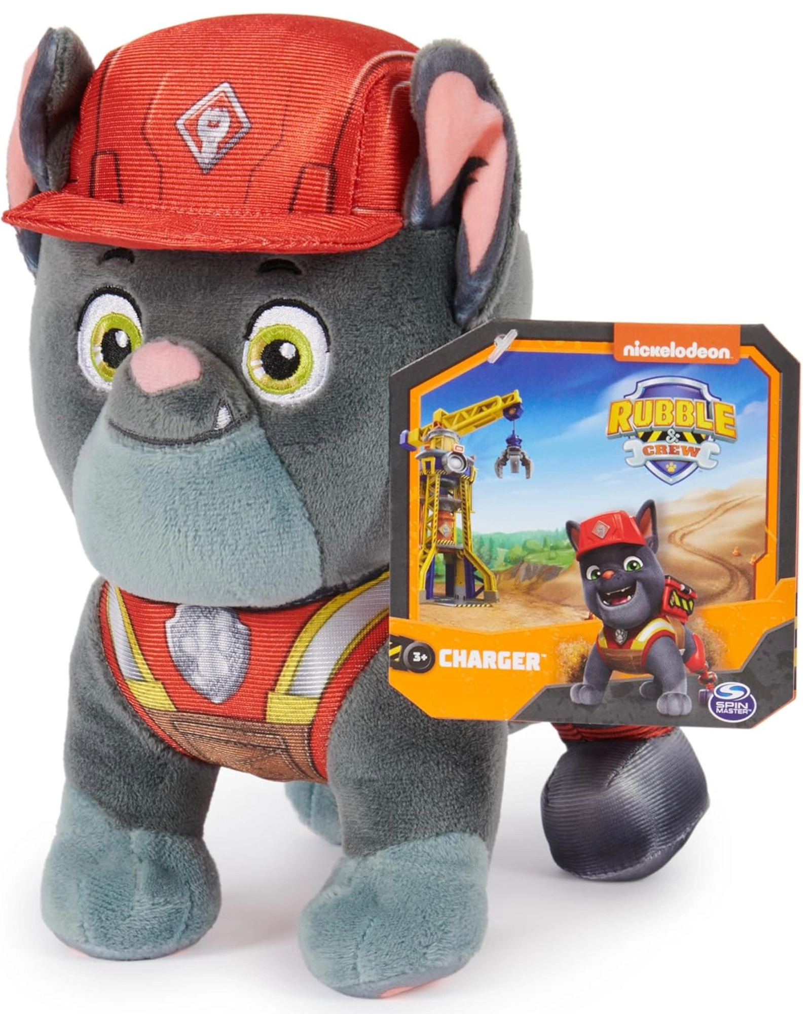 Plyšák Charger je energický francouzský buldoček ze série PAW Patrol: Rubble & Crew, kde pomáhá s přepravou těžkých nákladů. Tato kvalitně zpracovaná hračka od společnosti Spin Master věrně zachycuje jeho vzhled – od červené přilby a vesty s reflexními prvky až po jemnou šedo-stříbrnou srst a velké vyšívané oči.