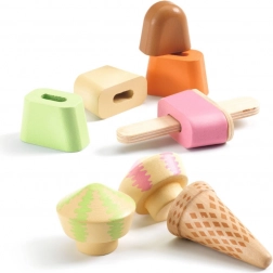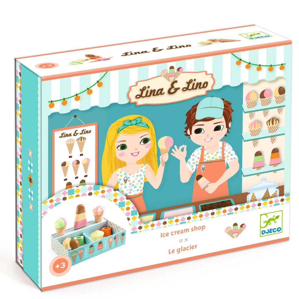Objevte kouzelnou dřevěnou sadu zmrzlinárna Djeco Lina a Lino pro děti od 3 let. Barevné kopečky, kornouty a nanuky s vyměnitelnými díly podporují jemnou motoriku, kreativitu a role-play. Ideální pro malé prodavače a milovníky zmrzliny!