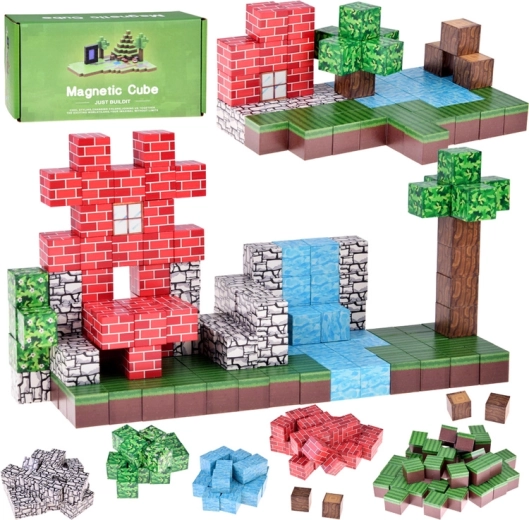 Pixelové magnetické kostky podpoří kreativitu, fantazii a jemnou motoriku dětí i dospělých. Každá kostka má realistický potisk (tráva, voda, cihla, kámen, dřevo), takže snadno vytvoříte barevné scény od domků přes potůčky až po stromy a terénní schody.