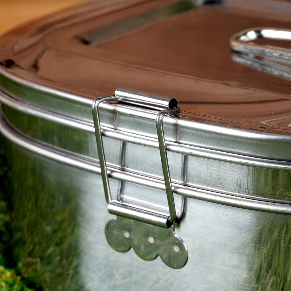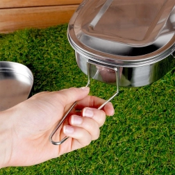 Tento kompaktní set z kvalitní nerezové oceli je skvělým řešením pro každodenní obědy i outdoorové dobrodružství. Hlavní nádoba o objemu 900 ml pojme syté hlavní jídlo, menší vložka 350 ml je ideální na přílohy, svačiny nebo dezerty. Po uzavření vytváří stabilní celek se spolehlivými sponami a sklopným držadlem pro snadné přenášení.