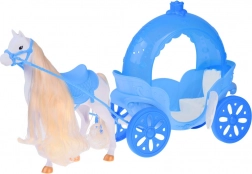 - Panenka princezna, tiara, náhrdelník, boty; bílý kůň se sedlem a uzdou; kočár