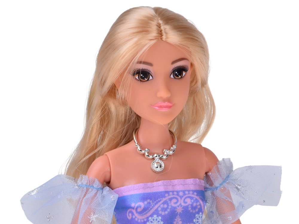 Princezna má dlouhé blond vlasy k česání, detailní šaty s tylem a mašlí a doplňky – tiaru a náhrdelník. Pohyblivé končetiny usnadní pózování i hraní.