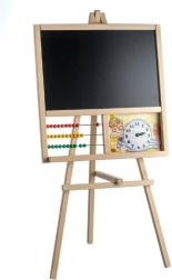 Tato dřevěná stojanová tabule je ideální pro dětský pokoj malého školáka. Je vybavena počítadlem a veselými ručičkovými hodinami, které nabízejí více možností pro zábavné poznávání.