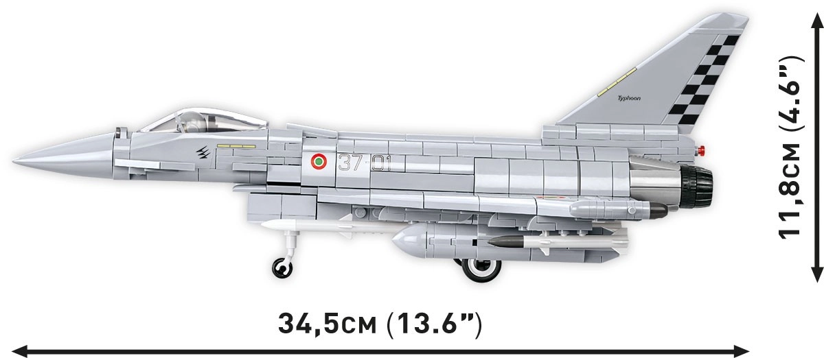 Postavte si ikonický víceúčelový stíhací letoun EUROFIGHTER F2000 TYPHOON v měřítku 1:48 z 642 prémiových kostek COBI. Model nabízí otevíratelný kokpit, pohyblivé plochy a odnímatelný podvozek pro čisté vystavení na stojánku s jmenovkou. Vysoce kvalitní potisky nevyblednou a jsou bez nálepek, stavba je díky intuitivnímu návodu snadná i pro začátečníky.
