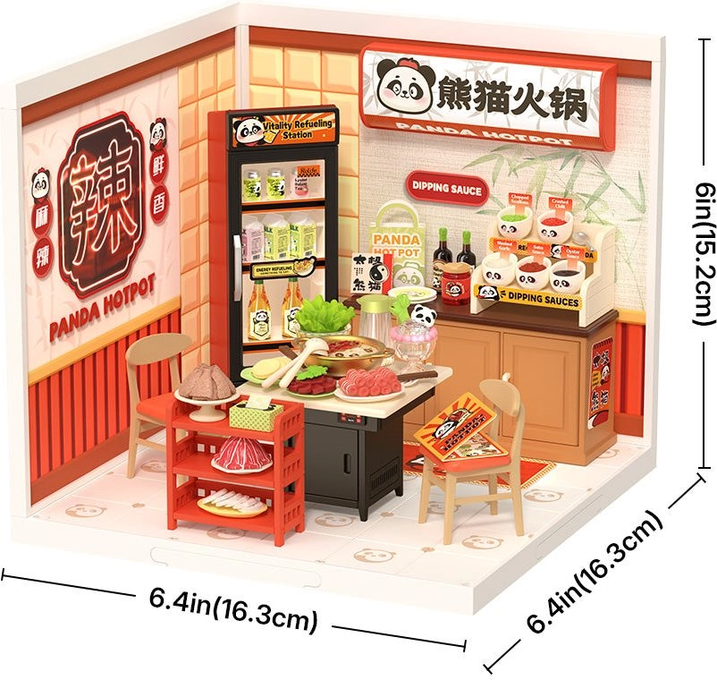 Postavte si vlastní kousek Asie s miniaturou restaurace od značky Robotime Rolife. Tento DIY domeček nabídne LED osvětlení, realistické detaily hot pot kuchyně, plně zásobenou lednici a bohatou stanici s omáčkami. Díky nízké obtížnosti 1/5 je ideální pro začátečníky i jako relaxační projekt a hotový model zaujme kompaktními rozměry pro stylové vystavení.