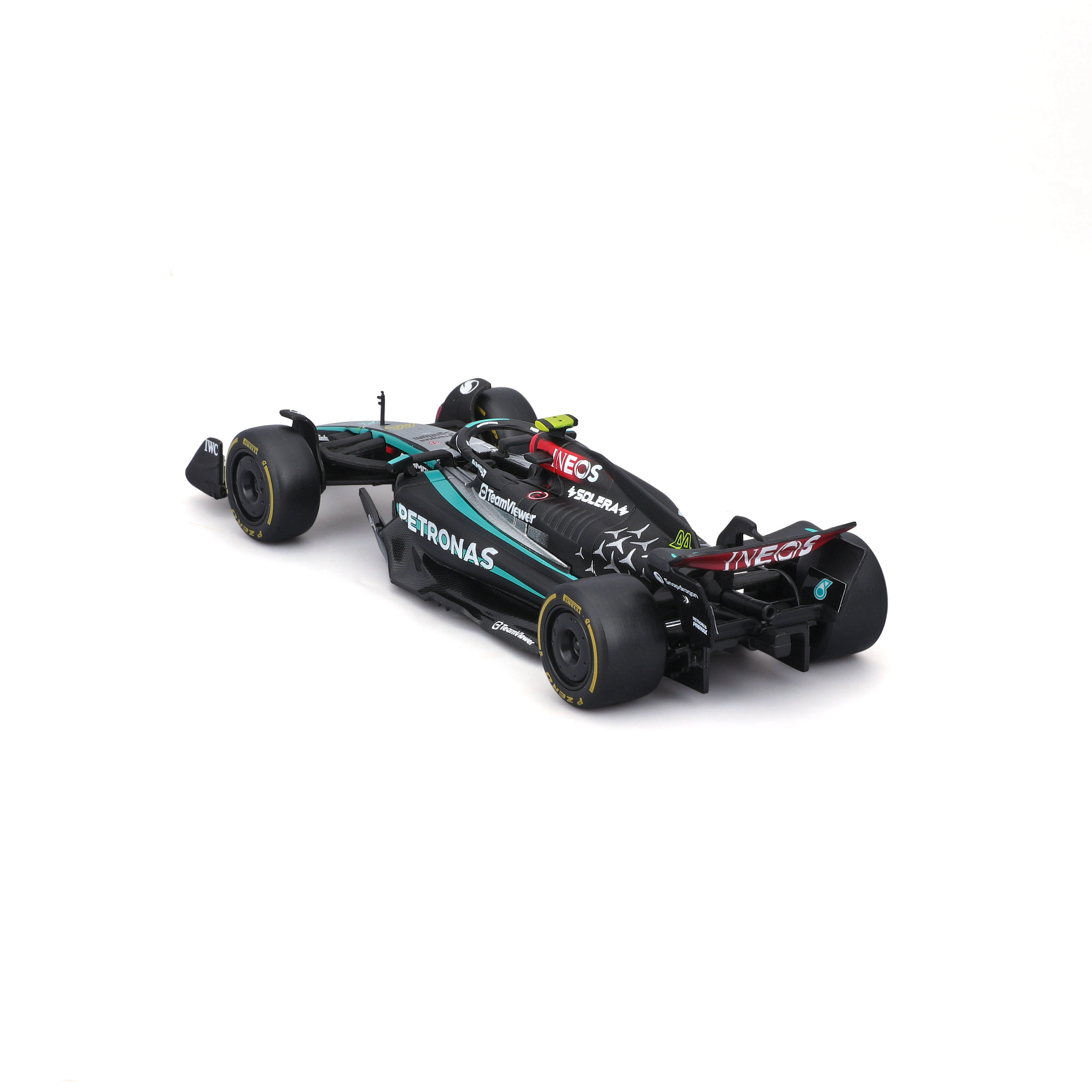 Objevte precizní miniaturu závodního speciálu Mercedes‑AMG Petronas F1 Team v edici W15 Performance (2024). Model značky Bburago věrně zachycuje aerodynamické tvary, sponzorské logotypy i ikonické černo‑tyrkysové zbarvení. Ideální do sbírky, kanceláře nebo dětského pokoje všech milovníků rychlosti.