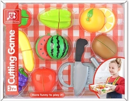 Set obsahuje praktické prkénko a bezpečný plastový nůž, díky nimž si děti mohou bezpečně hrát na vaření a přípravu jídel. Hra přirozeně rozvíjí jemnou motoriku, koordinaci ruka–oko a podporuje učení barev a tvarů.