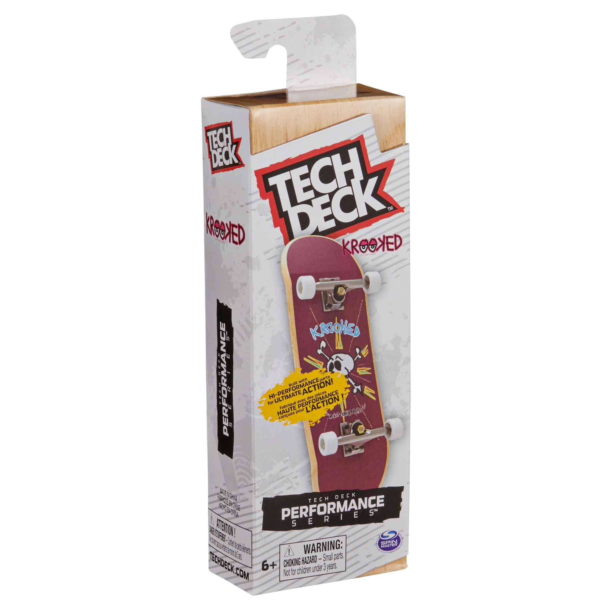Objevte realistický fingerboard z řady Performance od značky Tech Deck s grafikou KROOKED. Dřevěná deska, pěnový grip, gumové bushingy a měkčí přilnavá kolečka zajišťují lepší kontrolu, přesnost a pocit jízdy jako na skutečném skateboardu – ideální pro učení a provádění triků prsty doma i na cestách.