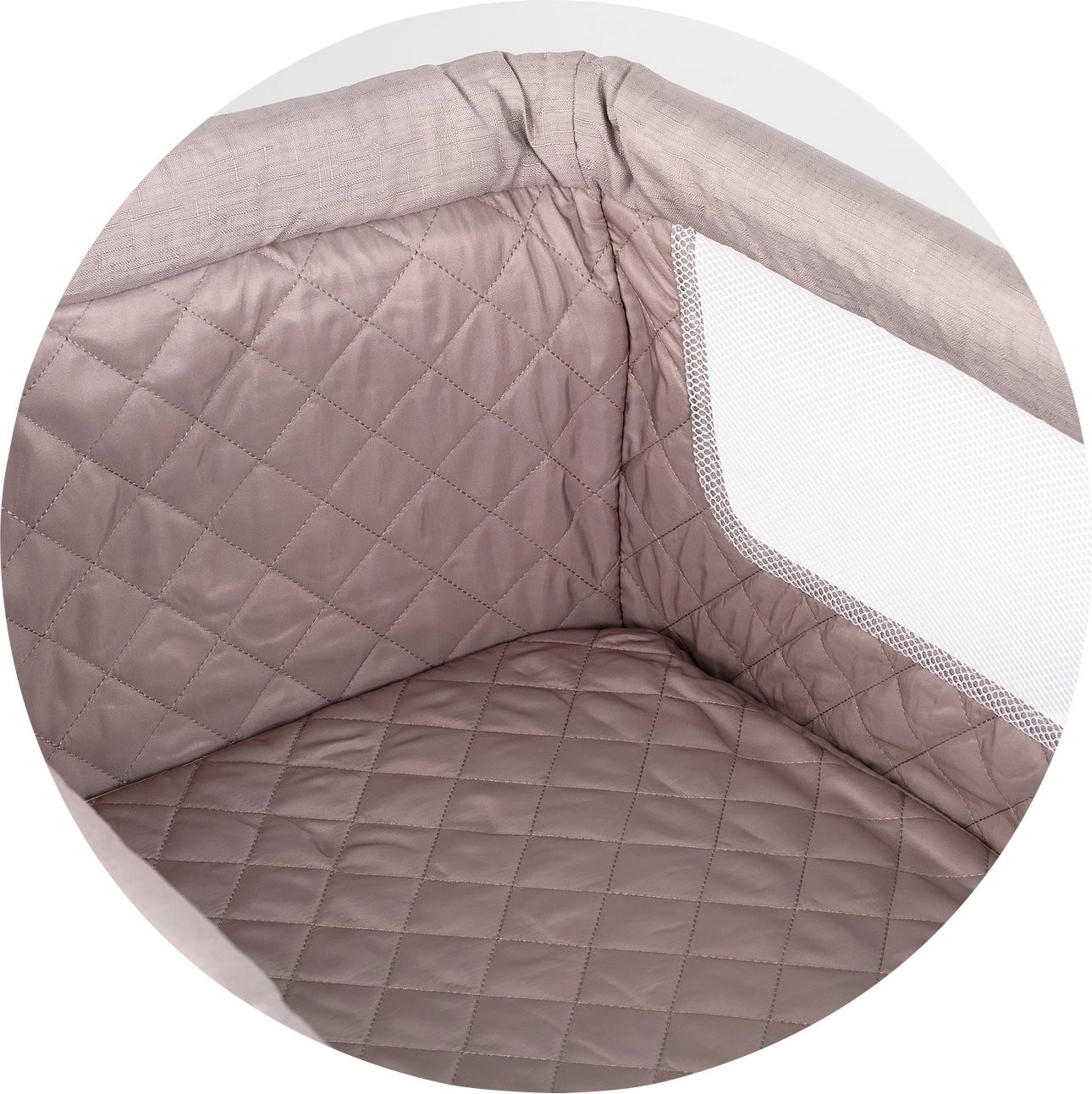 Síťované strany zajišťují skvělou cirkulaci vzduchu a nepřetržitý dohled nad miminkem. Měkká, polstrovaná vnitřní část s pohodlnou matrací podporuje klidný spánek.