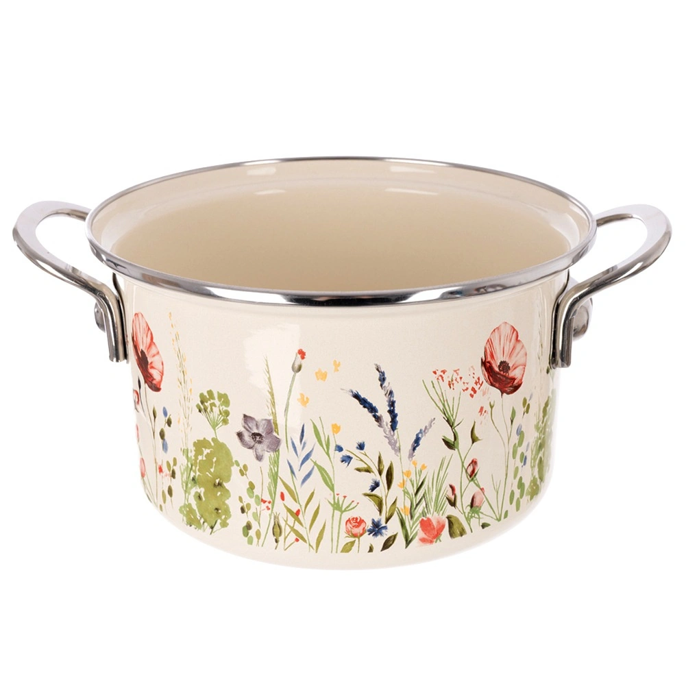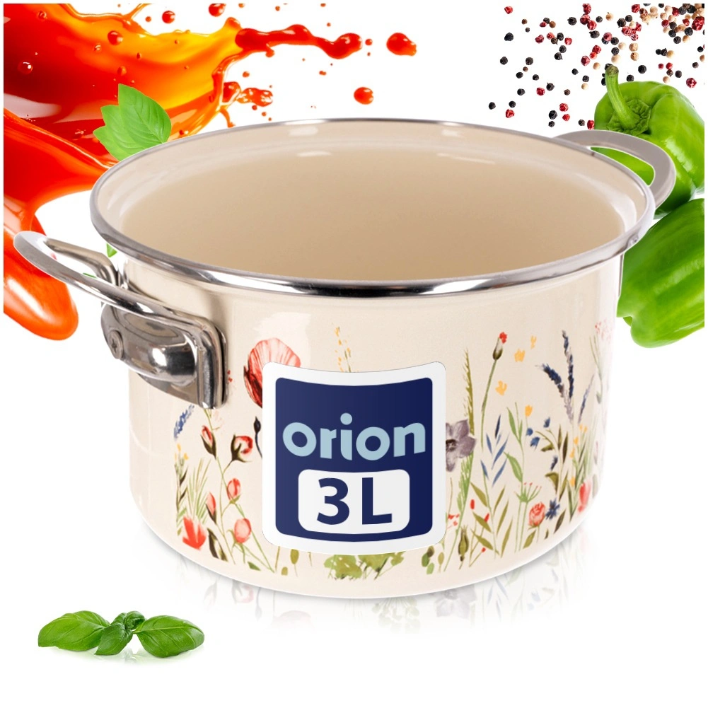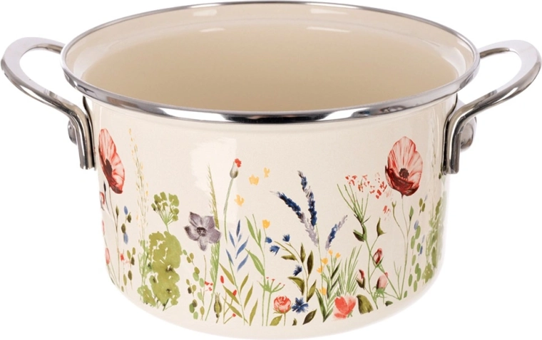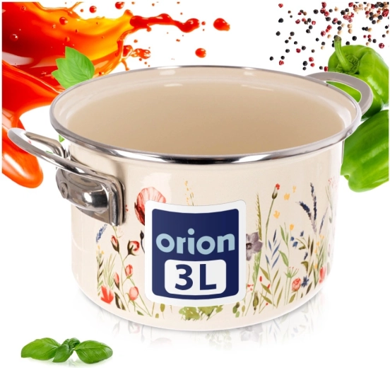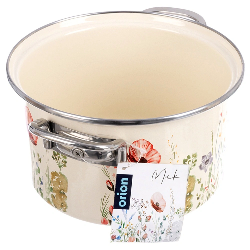 Elegantní smaltovaný hrnec o objemu 3 l v krémové barvě s motivem polních květů je ideální pro každodenní vaření i dušení. Díky nerezovým okrajům a pevným kovovým uchytům se s ním pohodlně manipuluje. Vhodný na všechny typy sporáků včetně indukce i do trouby a lze jej mýt v myčce. Tradiční vzhled v retro stylu a zdravotně nezávadná smaltovaná ocel od české značky ORION.