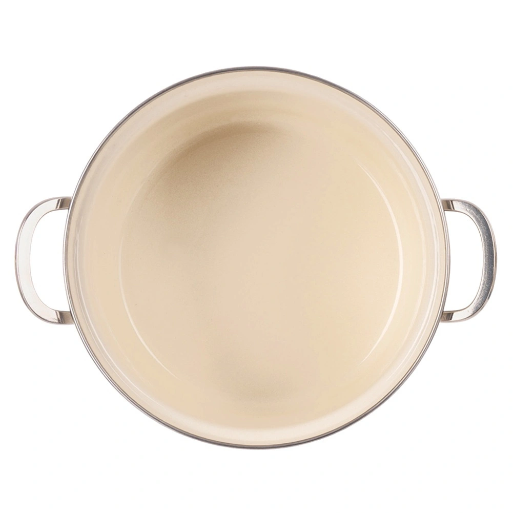 Krémový smaltovaný hrnec ORION Maki o průměru 20 cm a objemu 3 l kombinuje nadčasový design s praktičností pro každodenní vaření. Kvalitní smalt na oceli je hygienický, odolný a šetrný k potravinám, nerezový rantl i kovové úchyty zajišťují trvanlivost a bezpečnou manipulaci.