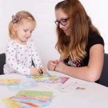 Úkoly sahají od doplňování chybějících prvků podle tečkovaných předloh až po náročnější zadání s vlastní kresbou, výběrem správných prvků či hledáním cesty v bludišti. Hra podporuje logické uvažování, kreativitu a udržení pozornosti – ideální pro děti od 4 let.