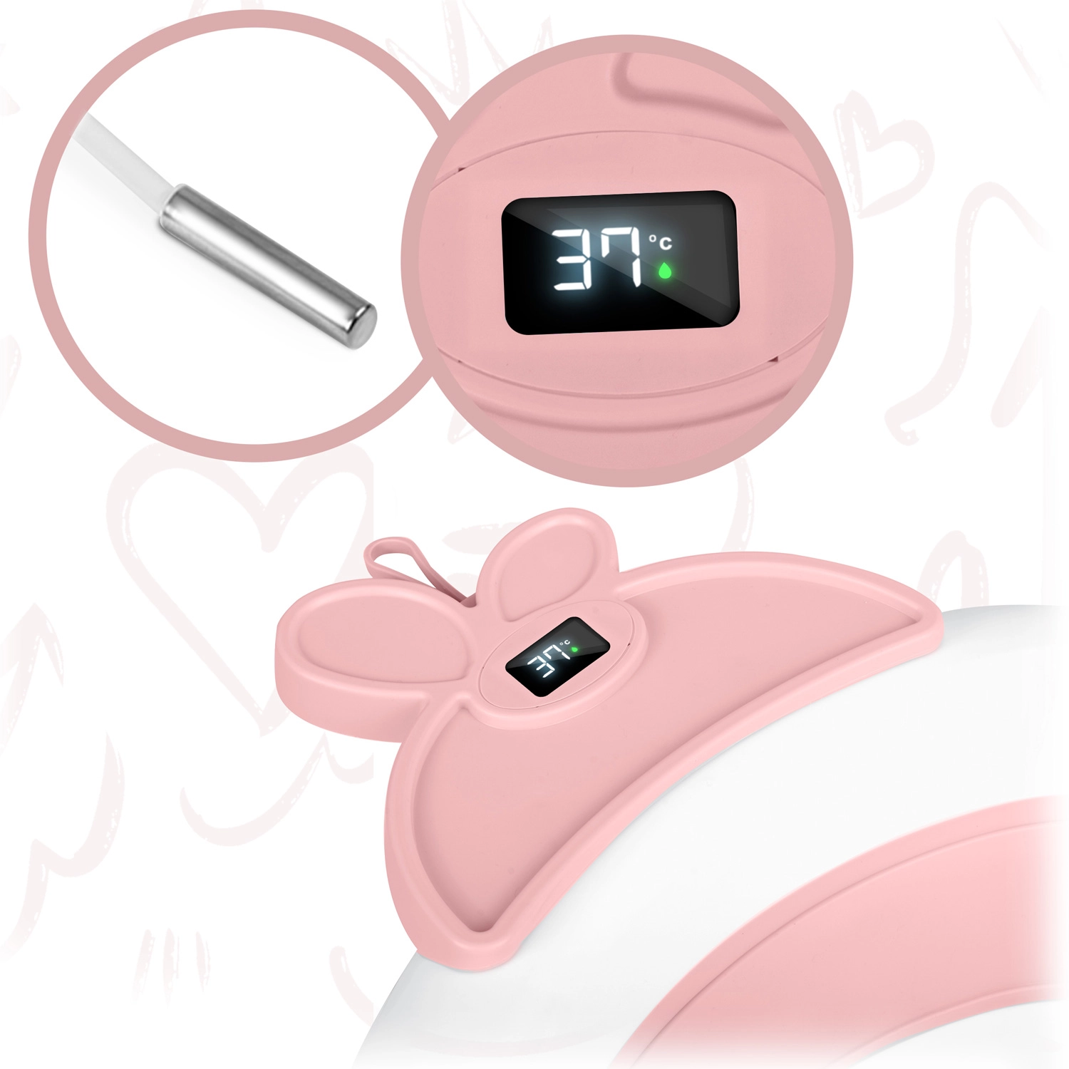 Skládací dětská vanička s LCD teploměrem zajišťuje pohodlné a bezpečné koupání od prvních dnů. Elektronický teploměr s čitelným displejem přesně monitoruje vodu, zatímco špunt, který mění barvu nad 38 °C, poskytuje rychlou vizuální kontrolu. Odolné materiály a kvalitní zpracování garantují dlouhou životnost.