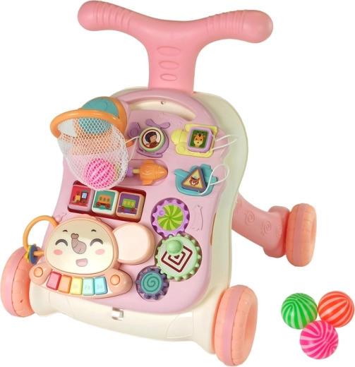 Interaktivní chodítko a hrací stolek 2v1 růžový