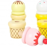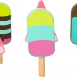 Děti si vyberou z 12 lákavých „příchutí“ – 6 kopečkových zmrzlin do kornoutu a 6 barevných nanuků. Kornouty s kolíkem umožňují kopečky jednoduše nasazovat a kombinovat, což podporuje představivost a učení formou hry. Stánek lze snadno využít i jako mobilní tržní stánek pro prodej „jiných výrobků“ z dětského sortimentu.