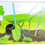 Objevte kouzlo zahrádky s touto kompletní sadou zahradního nářadí. Sada zahrnuje velký výběr nástrojů, jakými jsou motyka, hrábě, rýč a kolečko, což dítěti umožní plně se zapojit do zahradnických aktivit.
