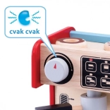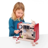 Děti si s tímto kávovarem mohou vyzkoušet, jaké to je být baristou. Souprava zahrnuje kávovar s odnímatelnou pákou a pohyblivým dávkovačem mléka. Vše je doplněno o ovládací displej s otočným cvakajícím knoflíkem a malovanými tlačítky.