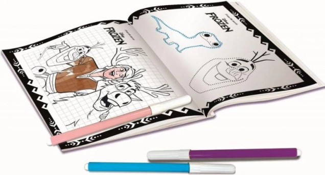 Barevné fixy a tematické kresby z filmu Frozen pomáhají dětem rozvíjet kreativitu.