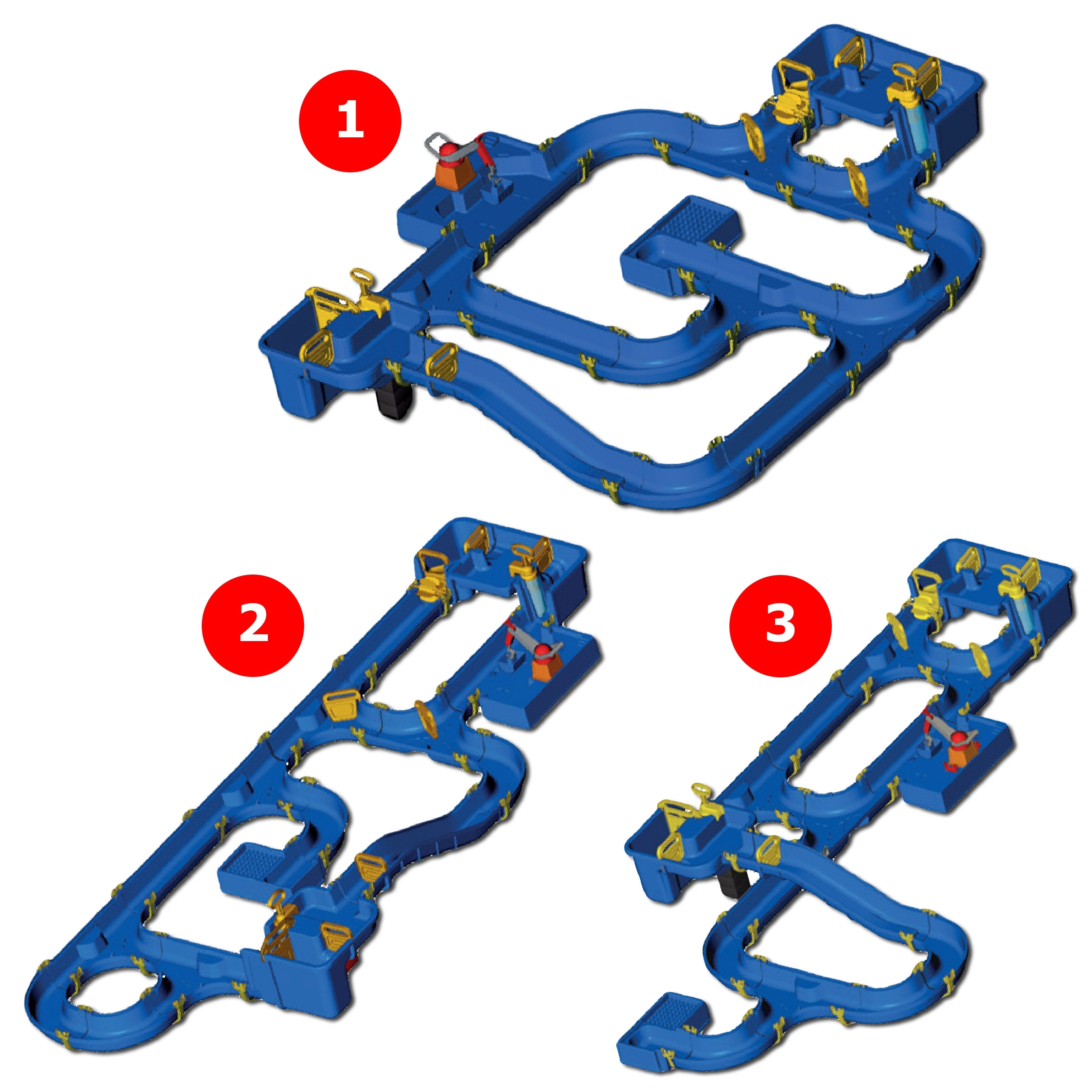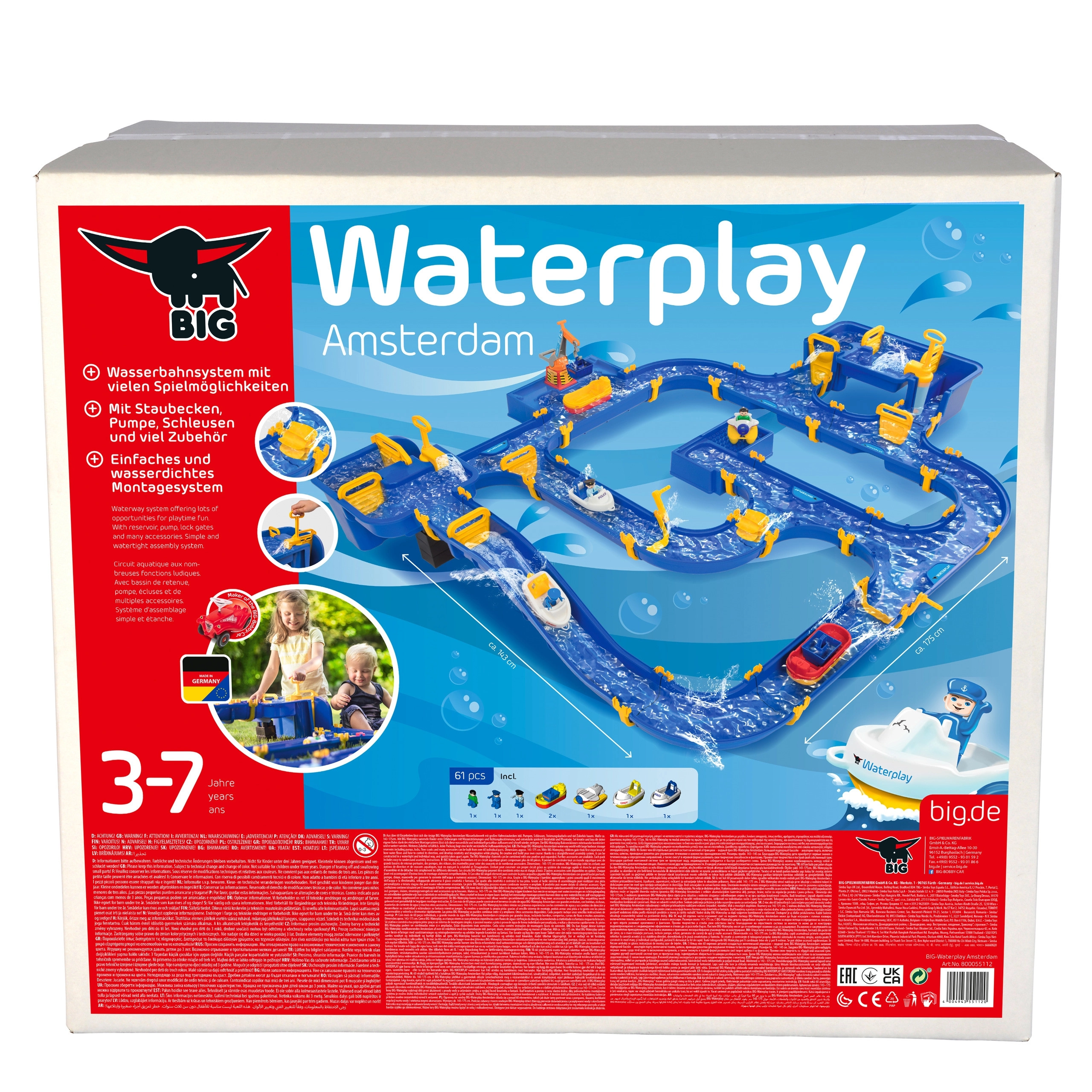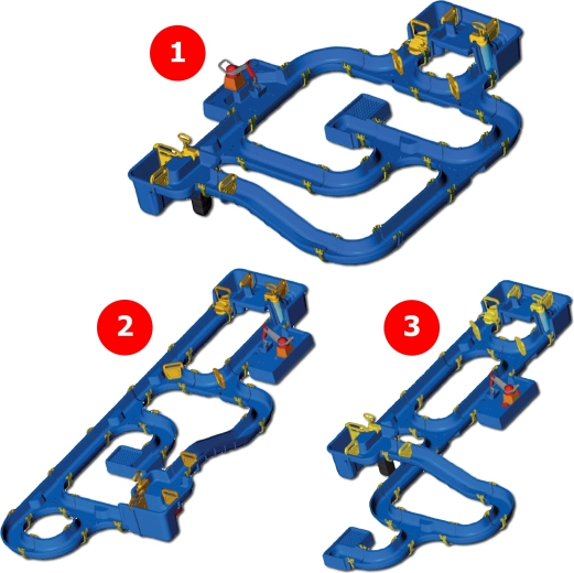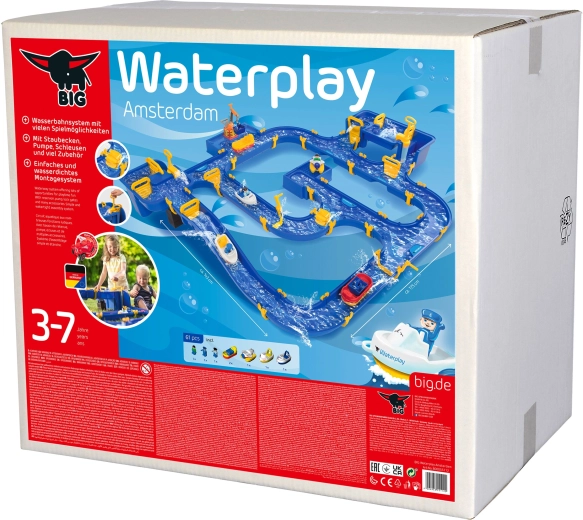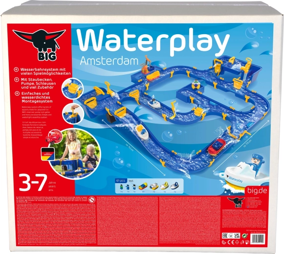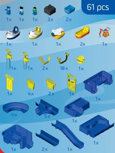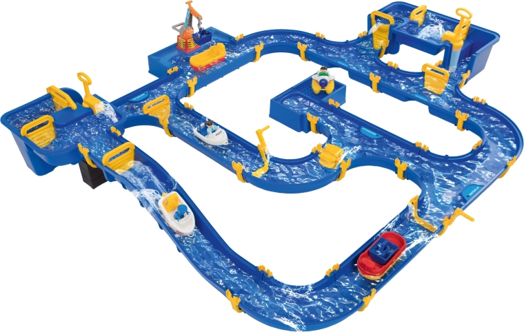 Součástí je šlusa propojená se strmým kanálem, dvě ruční pumpy, vodní kolo, čtyři různé lodě a tři figurky. Díky speciálním těsněním se set snadno skládá bez lepidla, lze jej libovolně rozšiřovat a rychle uklidit. Celá dráha dosahuje délky až 175 cm, takže poskytne spoustu prostoru pro společnou hru venku i doma.