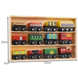 Set obsahuje 3 lokomotivy a 9 vagónků v různých barvách, nabízí tak pestrou zábavu.