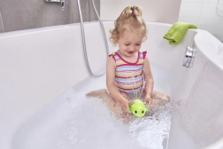 Tato roztomilá želvička do koupele je skvělým společníkem pro malé vodomily. Plave na hladině a jemným proudem stříká vodu, čímž podporuje smyslové vnímání a motivuje děti k interaktivní hře během koupání.
