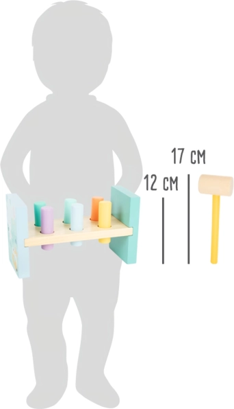 Tato hračka je navržena k rozvoji jemné motoriky a koordinace ruka-oko u dětí. Barevné kolíky a malý kladívko motivují děti ke hře a zlepšují jejich sílu a koordinaci.