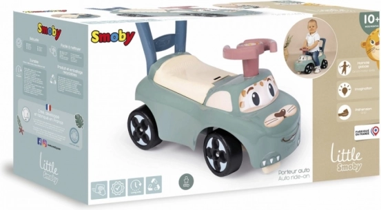 Lehké a stabilní ergonomické dětské odrážedlo s protiskluzovým volantem zajišťuje dobrou přilnavost i při rychlejší jízdě. Díky stabilní konstrukci zaručuje vozidlo bezpečné potěšení z jízdy uvnitř i venku. Chytrý design nabízí opěrku zad, kterou lze snadno uchopit. Takto se dají nacvičovat první krůčky při tlačení auta. Součástí výbavy je úložný prostor pod sedadlem. Nízká výška sedáku usnadňuje nastupování a vystupování. Přední a zadní nárazníky poskytují dodatečnou stabilitu. Rozměry produktu (DxŠxV): 54 x 27 x 40 cm.