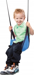 Kovová spona na popruzích dovoluje rychlé nastavení délky podle výšky dítěte i místa uchycení. Robustní textilní popruhy zajišťují stabilitu a rovnoměrné rozložení hmotnosti při houpání. Houpačka je určena pro děti od 3 let a je vhodná pro použití pod dohledem dospělé osoby.
