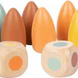 Tato dřevěná paměťová hra staví na jednoduchých pravidlech: hodíte kostkou a podle padlé barvy hledáte odpovídající dílek. Díky střídání barev a skrytých pozic si děti zábavnou formou posilují krátkodobou paměť, pozornost a koordinaci oko–ruka. Hra je rychlá, přehledná a výborně funguje i při krátkých herních sezeních.