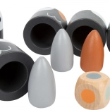 Odolné dřevěné dílky s hladkými hranami a moderním potiskem zaručují dlouhou životnost a bezpečné, příjemné hraní.
