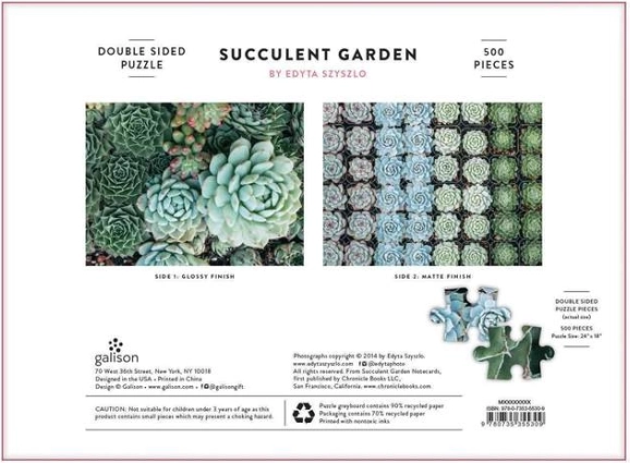 Užijte si relax u skládání stylového oboustranného puzzle se sukulenty od značky GALISON. Sada nabízí 500 pevných dílků, dvě různé ilustrace na obou stranách a prémiovou kvalitu z recyklovaného papíru. Díky lesklé a matné povrchové úpravě snadno rozlišíte strany, zatímco netoxické inkousty a přesně lícující díly zaručí příjemný zážitek pro celou rodinu.