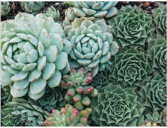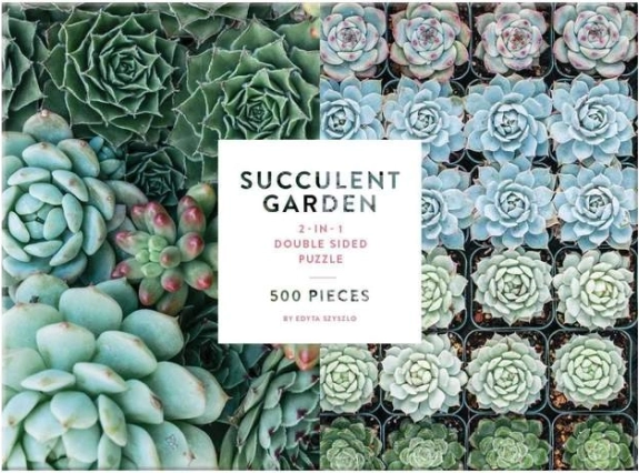 Objevte krásu sukulentů na dvou různých motivech v jednom balení. Toto oboustranné puzzle s 500 dílky přináší výzvu i odpočinek – z jedné strany lesk, z druhé mat pro snadnější orientaci. Kvalitní tisk vyniká živými odstíny zelené a modré a dílky do sebe přesně zapadají.