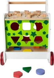 - vkládačka, bludiště, otáčivé kostky, tabulka na křídu, úložný prostor